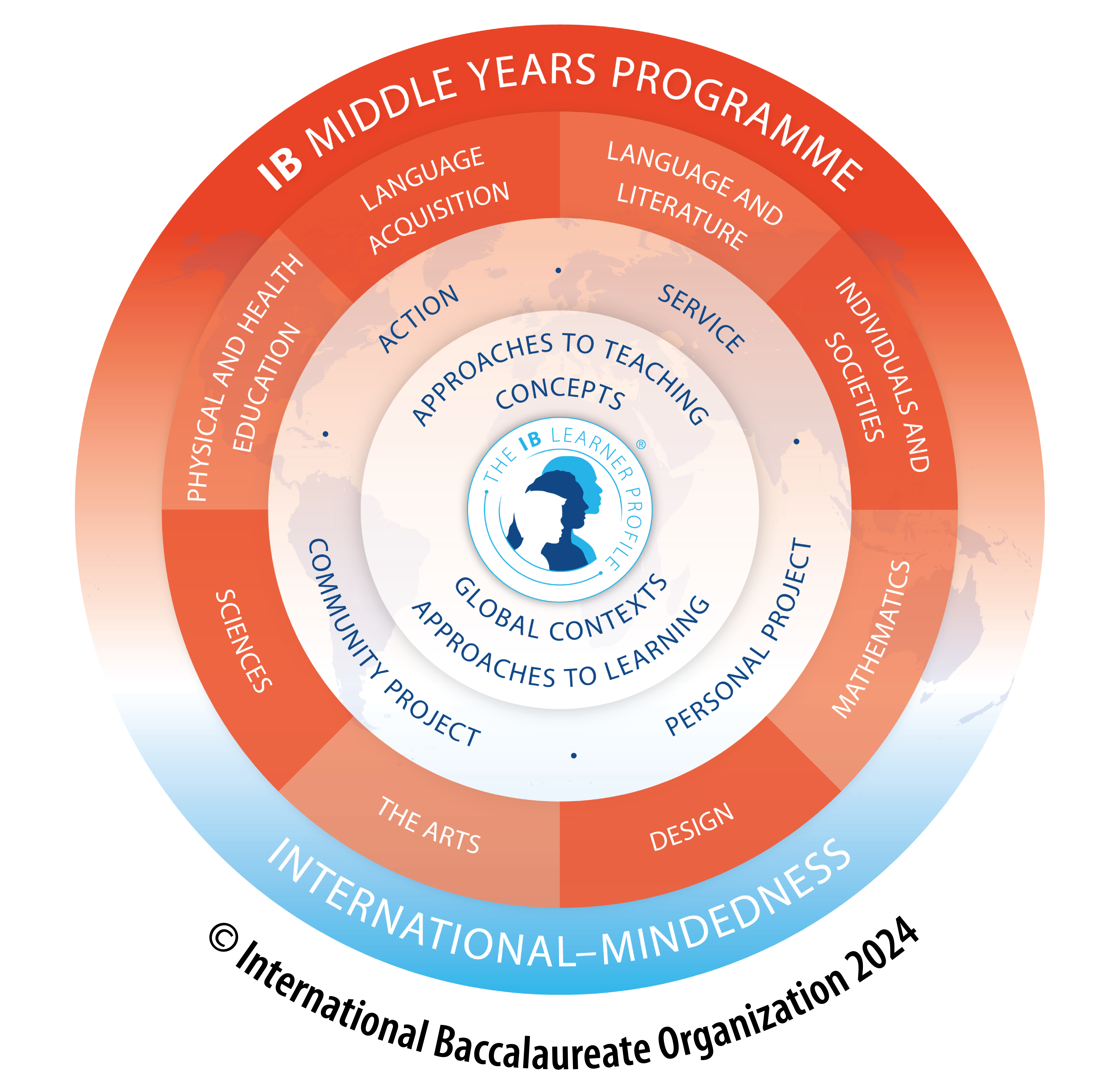 Eight subject groups are taught conceptually and contextually based on the areas of exploration of global contexts, creating a framework for learning within and across these subjects: